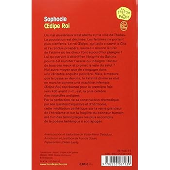 L'Oedipe Roi de Sophocle est un monument de la littérature universelle. Ce texte a servi de matrice et d'inspiration à tellement d'autres. Sans parler des usages non littéraires du mythe d'Oedipe.Dans la pièce de Sophocle, Oedipe est le héros tragique par excellence. Celui qui, conscient et malgré lui, est broyé par le destin et fini accablé de malheurs.Cette édition de la GF est très pédagogique et rend ce texte ancien accessible à tous.
